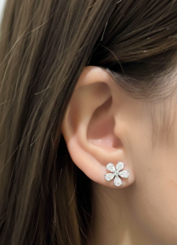 Pear Shape Lab-Grown Diamond Flower Earrings